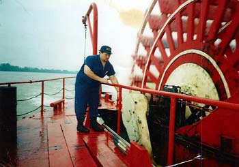 I took a job as a deck hand on the Delta Queen Steamboat after a short tour in the Army. In the six years I worked for the Delta Queen Steamboat Company I worked my way up to oiler, fireman, maintenance tech, to jr. engineer. It wasn’t until my first child was born that I knew that my time of staying away from home for a month at a time was over. But, my boating experience was only progressing.