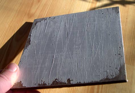 Thus, after coating and curing, I dragged 3 times them across wet concrete for about 20 feet with about 30 lbs on each sample. Results were about the same for all samples – light surface scratching all over with occasional gouges that took off all paint.