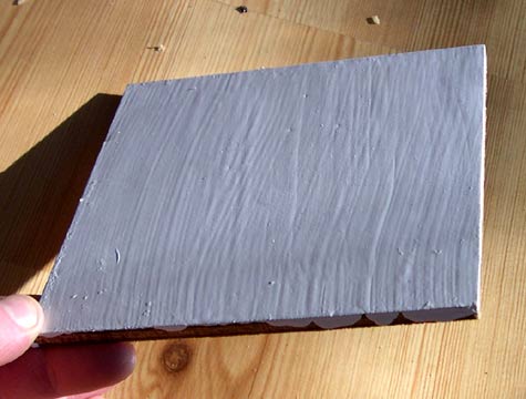 Primer applied 3/2/03, 64 deg. F, 29%. Paint applied 3/8/03 in similar conditions. Here’s a photo of a representative sample.