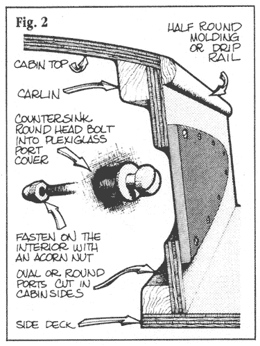 Smaller ports are the safest on any boat exposed to occasional weather, and they don't compromise topside strength as much as large holes. It's always wise to leave a substantial margin of the cabin side all around the perimeter of the port for strength. Once you determine the location, all that's necessary is to cut the hole, seal the end-grain wood or exposed fiberglass laminate, and bolt the port in place with plenty of caulking to ensure watertightness.