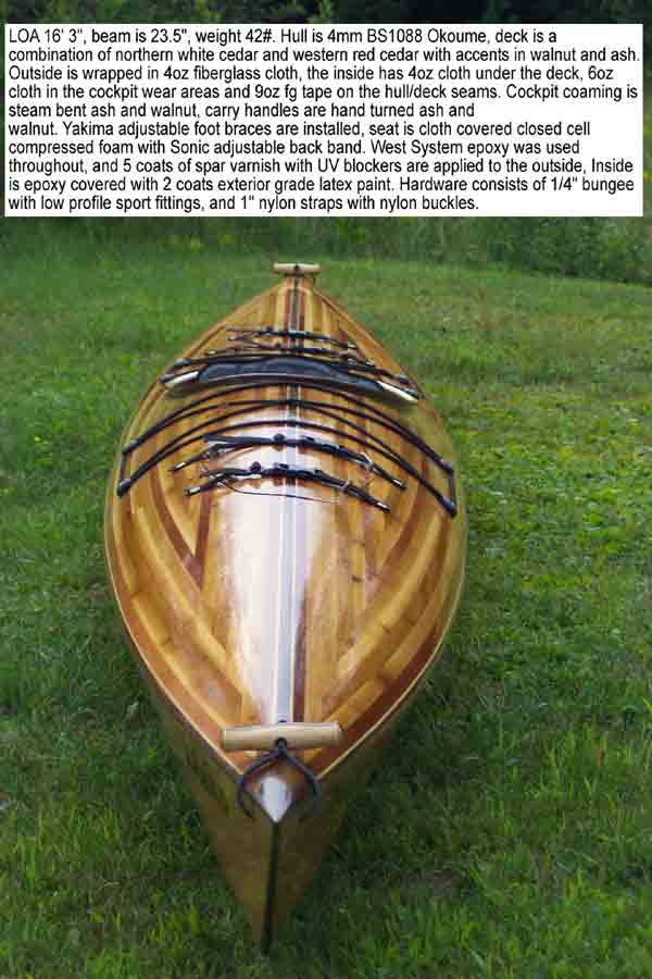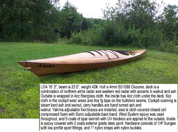 designed, one off hybrid wooden touring kayak.