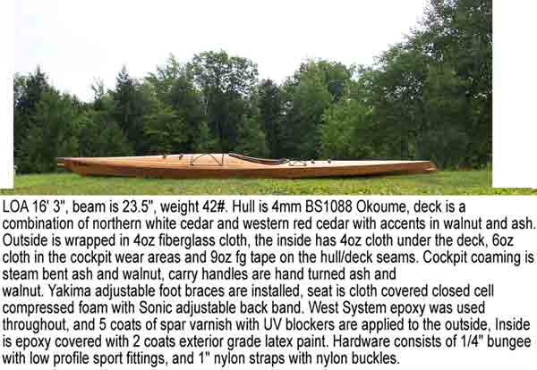 sale, 6-hr canoe (Mike O'Brien design), luan