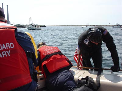 Oswego, New York - United States Coast Guard Auxiliarists, America's Volunteer Lifesavers assisted the United States Navy at a recent harbor festival, held in the historic Oswego harbor, on July 31st.