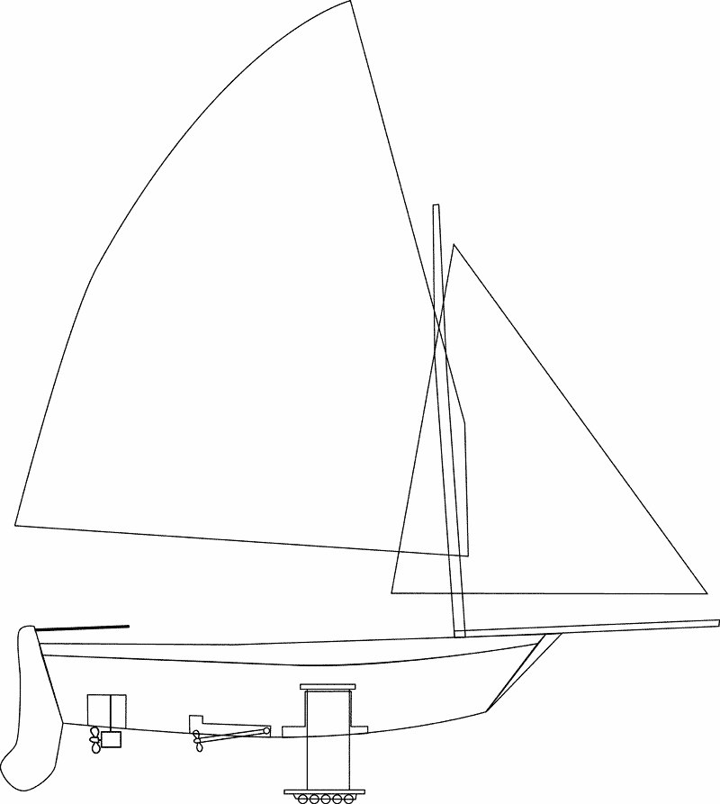motor; and a novel Daggerboard/Keel with Roller Blade wheels to aid in Portage mode.