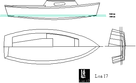 You see, when I met Pat, I had been looking for a small sailing cruiser to convert to power. In our area, small sail boats are a dime a dozen. You can find them really cheap if they don’t have a trailer and are eating up moorage fees. But on the other hand, I had been reading about a number of common faults with such a conversion. First, if the mast is removed or the keel shortened, stability and roll timing can suffer. This can make for a uncomfortable or dangerous boat. Second, sail boats are also often slow under power. Slow, that is, compared to what the same power could do in a faster hull form with a straighter run. But what would happen, I reasoned, if the sailboat was a centerboarder like the Loa 17 I owned so many years ago? If it could stand up to sails with just form stability, and if I liked its action with the sails furled, surely it would be a low risk conversion. Perhaps straightening out the run would make it faster? And then, I found only the second Loa 17 I have ever heard of!