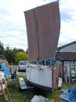 At the launching ramp in Port Townsend, Washington: The mast is in the lowered trailering position.