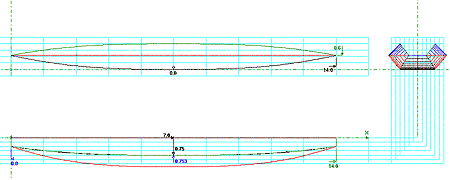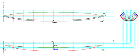 a flat top and Vee bottom. It is 14 feet long, and has a max width