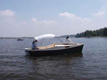 Amesbury power dory with a small cuddy added and a new 4 stroke