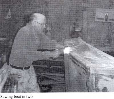 and cut the boat in two, sliding the saw between the two bulkheads.