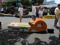 On Saturday April 16 and Sunday April 17 of this year the Marine Industries Association of South Florida, located in Ft. Lauderdale, Florida, sponsored an event that they call the Plywood Regatta. It was in fact the 9th annual rendition of this event. It is a boatbuilding contest for teenagers that pits teams of up to 8 kids in the construction and racing of boats that they design and build themselves. Each team also has adult mentors who can coach but not actually build. My team was my son's Boy Scout Venture Crew. Each team also requires a sponsor since there is an entry fee. Our (enthusiatic!) sponsor was Thomas Marine Systems. In addition to being active scout parents they are the owners of a top notch marine refrigeration and air conditioning company.