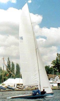 The Thames 'A' Rater is an historic class of river racing yachts, dating from Victorian times. At 27' LOA (8.30 M approx) with a 46 ft (14.15m approx) mast and 350 sq ft sail area the Raters make a spectacular sight sailing from their base at Thames Sailing Club on the Surbiton reach of the Thames. Although the hulls are traditional, the rigs continue to be developed, and the rater is unbeatable in river sailing. Sail numbers now total 22, and the fleet is a mixture of original wooden boats, and modern grp hulls taken from a mould of 'Ulva' (1898). The wooden hulled boats, which are highly competitive, date from 1898 to 1922