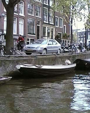 1(above) Pram, bike, car. All three of Amsterdam's main modes of transport. Nobody walks. The pram is pretty, with just a little snub nose where the pointy bit should be.
