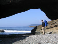 This is a natural rock arch on the beach, a couple of other hikers have just passed under it. |