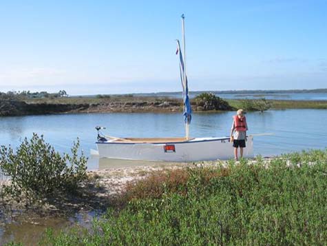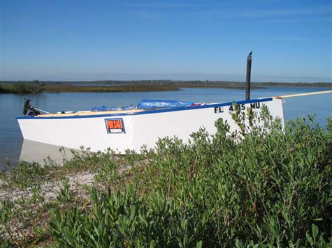 with her beached before and after we got underway and with me making a short test ride under power as she was first launched... I wanted to test the hull and see how she sat in the water and rode before I rigged the mast and sail...