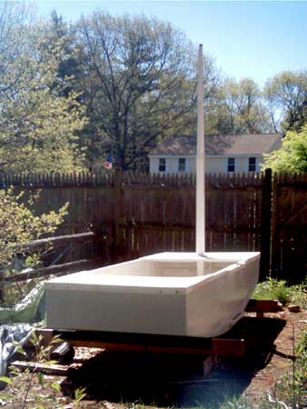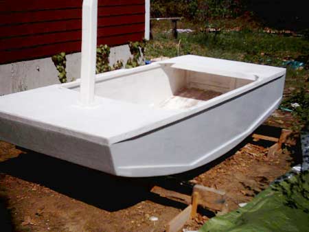 Last fall I wrote you about my big brother to the Bolger "Brick" called "C/M/U" (concrete masonry unit, i.e. cinder block). Built with two thicknesses of 1/4 inch lauan ply for a bottom, doubled up gunwales, stout fore and aft decks, stretched to 10 feet l.o.a., with slightly reduced hull depth, to be rigged with a standing gaff rig. As Phil Bolger predicted, it is a much different boat than his original. It is big, heavy, and less portable than "Brick", but I think it is more a "Beetle Cat" for the 21st century. And I think a lot of folks could "sleep out" in it in a pinch. One feature I came up with is the short, stout mast mast made of a ten foot 2X4 and pieces of 1X4 screwed and glued to the lower third of the mast to reinforce it. I will send the results of sea trials as soon as I have done them. Pics are attached. Thanks.
