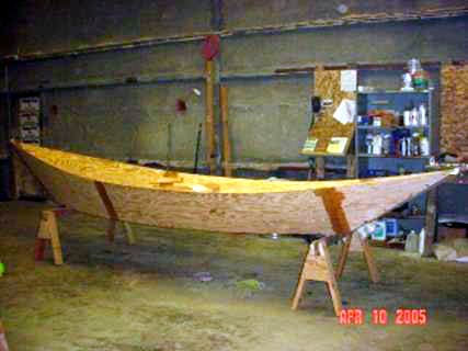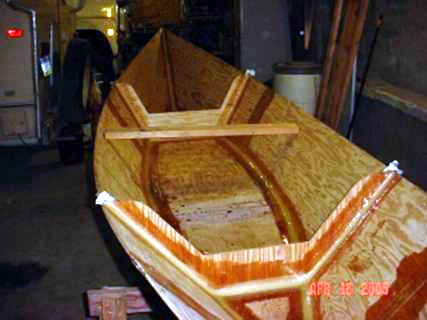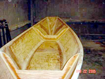 I didn’t think to take pictures of it till we got to here. That didn’t take too long. We used fir marine plywood because that’s what we could get, two ¼ inch for the sides and one 3/8 for the bottom. Ah, there’s no boat shape that’s quite as lovely as a dory. In fact us men know the only prettier shape on a boat is not the boat itself, it’s on the firstmate.