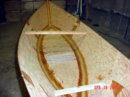 This is another shot looking toward the stern. The rub rails are on and the shape is getting smoother and more refined.
