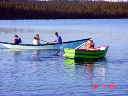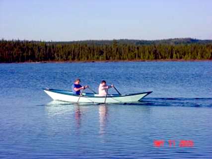 We did cut down the sides at the sheerline a little. I was concerned about all that boat out of the water catching the wind. It does perhaps detract from the looks a little though but we are happy enough with it. It rows like it’s heavier than our smaller boats (which it is) but it keeps gliding between oar strokes and man does it travel! We have had more than 550 lbs of people in it and it handles it like a dream. Like dories it is a little wobbly feeling at first but you soon learn to relax and trust her and it is a delight to row. Now I’ve got buy or build some longer oars to fit the way I like them to.