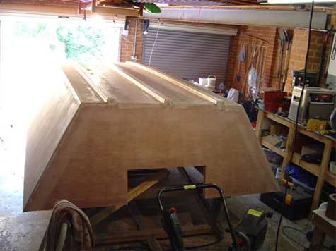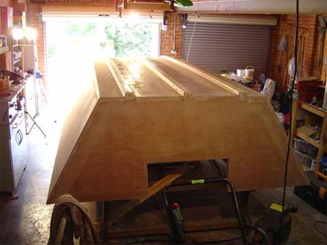 I have finished planking the hull, I have installed the outer bottom battens, cut out the transom for the motor and dynel sheathed the hull using BoteCote epoxy and fairing filler. So far the only down side to boatbuilding is the never ending sanding. I think the best money I’ve spent so far is on a Bosch random orbital sander.