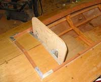 I also used hardware store aluminum angle to fabricate some hinges for the "Folbot" style seat back that allow the back to swivel some, for comfort and to tip up flat to be used as a seat for sitting on the top of the deck. But, this boat is narrower than my "Super" so it is a lot more precarious to sit high, like that. I'll stay in the Bottom of this boat.