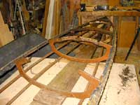 The bottom and frames are 1/2 fir plywood, copied as closely as I could to the rotted frames of the old boat.