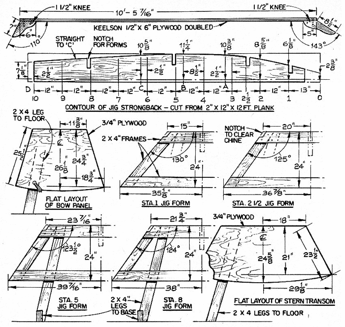 and the big 2 x 12 strongback complete the building jig. No lofting