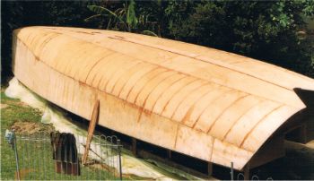 When the hull was the right way up it was easy to see what made such a boat, materials wise. Not a lot really, being all Ockume Marine grade ply's, Mexican Red Cedar Stringers and Epoxies to glue it all together, it was as minimal a cost structure than you can find. Even more so today, if one is considering a GRP hull and deck purchase. As Oil prices Surge to U$60 a barrel and beyond, we will soon see construction of yachts in GRP spiral as the Polyesters used in construction rise with the oil price. We are talking double the cost here too, ok, the Epoxies will follow with an increase in price but our Plywood/Wood/Epoxy kits only have around 15% as the Epoxy component, so the extra cost rise, percentage wise, will be very much less that the GRP boats...