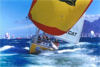 After Dudley got his hull turned over, he then fitted the deck and prepared the boat to race in the 1996 Cape to Rio yacht race. He did the race twice in the same yacht, plus one return leg too... sure proof that his design and construction methods really do work... I think its correct to say that Dudley had a seriously tight cash book right then. His other boat had been stripped of all its gear and where possible, those parts recycled and installed into the new boat... the old hull was then sold on to a new owner and most probably assisted with the purchase of a brand new Diesel Engine.