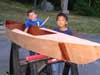 Kids like boats - especially small one-man boats where they can be captain. Marc Bourassa and his sons built two such boats and Marc sent this report: |