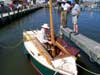 One of the smallest craft was a lovely purple catboat designed by Phil Bolger with foot steering and an off-center centerboard. The owner whose name escapes me, sorry, had it commissioned for her to fit inside her Honda Civic Hatchback and be loaded by her alone. (pic #4) It sailed well although the owner says it can get into irons easily when coming about.
