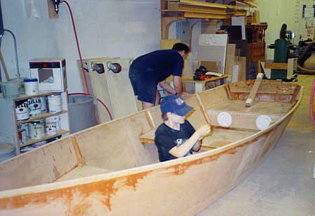 We are building a boat. By we, I mean: my two sons – Devin & Colin - ages 12 & 17; my old friend Jerry (don’t ask how old… he gets quite testy); and myself – ageing quite nicely, thank you. By a boat, I mean the Goat Island Skiff, designed by Australian Michael Storer. It’s a 15’-6” open, plywood & epoxy, flattie skiff. It’s designed for oars, outboard or sail. Now… since I’m a beer fan, for the most part this project has been fueled by the delicious micro-brewed beers of the Pacific Northwest. Even the boys enjoy a sip on occasion. Especially young Devin.