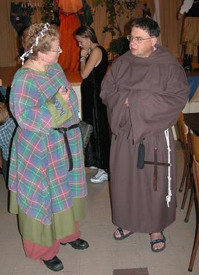 A few years ago my daughter informed me that she was planning a Medieval Wedding and asked the wedding party to dress in suitable costume. I decided to go as a Franciscan monk. I did a bit of research to make sure my costume was reasonably authentic. The habit was pretty straightforward (see photo below) but I needed to make sure I had the rest of the “bits” correct, including a monk’s haircut (tonsure), cross and rope belt.