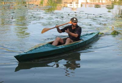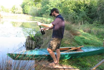 Christophe takes her for a spin. I think it was his first time in a kayak, and he didn't sink either