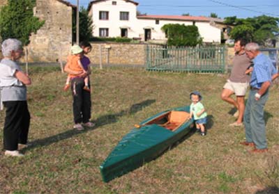 Most of the plans available didn’t seem to fit what I wanted to do. A lot of guys are building with aluminum tubes and high density plastic, but I wanted a frame built in a material that I was familiar with -- wood. I knew I would need some metal fittings to make the joins in places were only metal was strong enough and wouldn’t swell and make the thing impossible to take apart after it had been in the water. I was going to build the boat at my wife’s parents’ place in a small town in France and so didn’t want to spend the whole vacation on the phone sourcing exotic materials in a language I speak haltingly -- so that meant stuff I could find at the local DIY store.