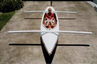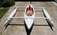 This craft was designed by Jim Michalak and turned out to be a 16ft. kayak that had been redesigned with outriggers added to become a small trimaran. |