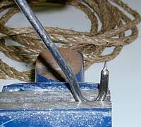 Anneal the hook’s point: clamp the sail hook