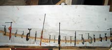 Here is our friend TiteBond III at work. Note the waxed paper keeping the laminates from sticking to the plywood.