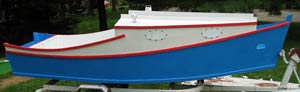 Transfer the lines to the hull by tapping a finish nail through the paper every half inch or so. Then cut along the line with a jigsaw.