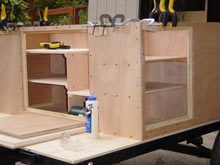 Seal the interior of the box and shelves. Install the front and side compartment shelves.