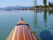 After four months of work a few hours a night she was done. On her maiden voyage at Waldo Lake in the Oregon Cascades, it was very satisfying to find out she paddled as beautifuly as she looked. |