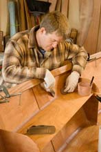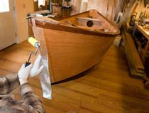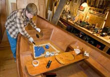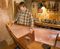 This technique works best using hardwood ply—mahogany, okoume—but getting good hardwood ply can be a problem in many parts of the country. Shipping can add to the cost, but hardwood ply works best with epoxy and unlike domestic softwood ply does not have to be sheathed with glass cloth. Hardwood ply also has very appealing face veneers, which is why so many of these boats are finished natural, and is also available in metric thicknesses allowing the builder to easily engineer the boat to suit usage. All lumberyards can special-order hardwood ply, but are often reluctant to deal with the hassle of small quantity orders. For consistent quality hardwood ply and small quantity shipping we have been pleased with Edensaw Woods, edensaw.com (800) 745-3336. Plywood is the heart of the boat and you usually get pretty much what you pay for with plywood.