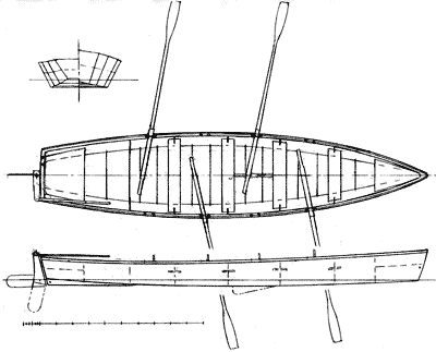 While competitive and recreational rowing is the reason behind the design, there are other possible uses for it. It can be rigged to sail, and being light and easily driven will go well with a fairly small rig. A centerboard trunk is an easy modification and will not impair rowing performance. Some users might want to combine rowing and sailing. If equipped with a simple tent and appropriate gear, it will make a good “Camping Cruiser”. People who still have some of the Tom Sawyer-Huck Finn spirit can take it from there.