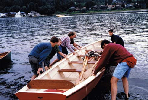 Organizations, such as yacht clubs, that have seen the demographics of their membership change with the passage of time, from mostly young hotshots to more settled family types, may -Find a non—stressful rowing program attractive. Retirement communities would seem to be a good field for this activity. Many have workshops where the boat might be built. The materials are readily available and relatively inexpensive. Boatbuilding skills are not required. The components are prefabricated before setup. Unlike conventional boatbuilding, nothing is attached to the floor and the assembly is a quick and easy procedure. The boats are light and easily transported. Perhaps some who are finding golf too frustrating, or tennis too hard on the knees, may find rowing a welcome change, and it is done in a sitting position. Those wishing to do something for society may foster youth involvement. Existing programs for getting young people involved in rowing show that all it takes is a little guidance plus the necessary watercraft.