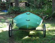 "The Owl and the Pussycat went to sea in a beautiful pea-green boat." It was actually Lake Wilderness, which is a short walk/pull from my home. But this time I had my new boat cart built with the 26" tires stolen off my old garden way cart (probably around 30 years old now). I can't believe how easy it was to pull the boat along on those big wheels (good for 300lbs each), and it became more apparent when I was going down any slight grade. It was pushing me along, and I wished I had brakes on it. I will post a story here soon on how I built the carrier; the company to order them from, and the item #'s of the wheels in their online catalog. They are only $35 each, plus shipping.