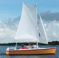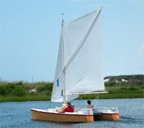 The sprit-sloop rig seems very powerful for its modest size. I built the mainsail at home, on the advice of Chuck Leinweber, Duckworks proprietor.