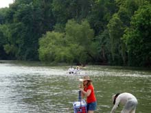 Arriving at the Smithville checkpoint. Our duct tape never worked so we paddled 25 miles with no rudder. We were able to get some tools and it took us about 30 mintues to fix it. |