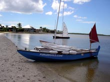 Noel Davis, of Furledsails.com, was again crewing on Oaracle, as he had in 2007. He had contracted a nasty virus the week before that had settled in his lungs, but was feeling better and after a visit to the doctor decided he was well enough for the the EC. Oaracle is a 20-foot Jim Michalak-design Frolic2, a balanced lugger with small mizzen and which weighs no more than 350 pounds empty and probably around 1,000 with both of us and our gear and supplies. This was my fourth campaign in Oaracle; in 2004 with wife Helen (we DNF’d with new boat problems), in 2006 with Chuck Leinweber of Duckworks and in 2007 with Noel. Both of the latter two races produced finishes, winning the coveted shark tooth necklace and mini paddle awarded to those to make the 300 miles. Helen (Wingnut is her tribal name, but known to the crew of Oaracle as the Admiral) had again issued orders that we were to go 24/7 and take turns sleeping.