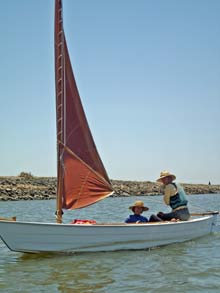 Three of us Scuzbums went north a few weeks ago and attended the 14th annual “Gunkhole”, a five day cruise on the California Delta (headwaters of San Francisco Bay) the week following the Texas200. We were there with 55 or so others in 24 small boats and three support craft including a scow schooner and tug from the collection of the San Francisco National Maritime Historical Park. A first time for me, but a return visit for my fellow ‘Bums. It was a great experience and gratifying on a number of levels, though it’s quite different in atmosphere than the Kokopelli or Texas200: 1) catered meals, 2) safety patrol boats, 3) relaxed itinerary, and 4) so little dry land that we spent two nights rafted up, unable to go ashore. I thought I’d send you a few selected photos from the Gunkhole; a fine bunch of boats for sure.