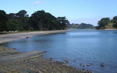 During the morning the wind had been shifting around towards the Southeast as predicted; but when we got near the Whangaparoa Passage it turned into a light northerly, which certainly hadn't featured in the forecast. This was right on the nose, so we started the motor again and proceeded through the two mile wide channel between Tiritiri Matangi Island and the Whangaparaoa Peninsular. Once through the passage, the wind settled down to a light north-easter, and we set course for the mouth of the Mahurangi River 8 miles off. The sun was beating down, the sailing slow and it was looking like it could be a long afternoon ahead of us. When we spotted lots of birds working and fish splashing about half a mile to the north of our course we decided to go and investigate to see if we could catch something for dinner. We spent the next hour or so with Barb sailing the boat backwards and forwards through the workup, and me fishing. It was a big workup but I only managed to catch several small kahawai and a little snapper, nothing worth keeping. We gave up the fishing when a small petrel dived on the line and got it caught around tits flight feathers. By the time we had freed the bird and let it go unharmed, we realised that the wind had strengthened quite a bit, and we then had a brisk and refreshing sail for the remaining few miles. It had risen to close to twenty knots by the time we passed Saddle Island and entered the river mouth, and we were ready for a break. We stopped at Scotts Landing, a beautiful little shallow bay a mile or so up the estuary, brewed a coffee and then went ashore to stretch our legs and decide where we would spend the night.