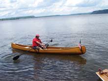 But there’s nothing like the excitement generated by the launching of a new homemade boat. That was provided by Bob Doyscher and his brand-new Teal. Designer Steve Lewis had his Scout Canu with him, and regaled us with tales of his current projects and design ideas.